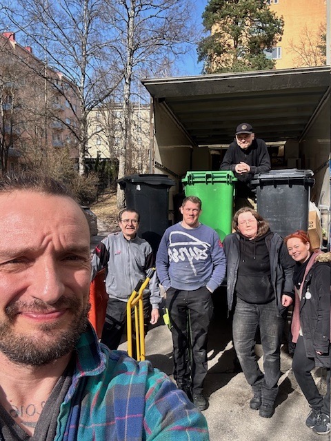 Tyhjennystiimi vasemmalta oikealle: Jan Lindroos, Jyrki Peltonen, Vahur Tedremägi, Toni Jylhämäki, Alisa Vaara, Telle Lindroos